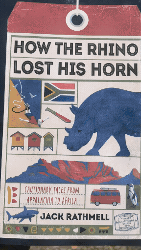 At the summit, enjoying a well-earned beer (there is a food court and a cocktail bar and a couple of gift shops and even a wine bar to service all the cable car-riders), I saw something remarkable: my book, How the Rhino Lost His Horn(©)! Two hikers were reading it. I did not want to disturb them, as they were so engrossed. They were taking it in turns to read various passages aloud to each other: they laughed ‘til they cried at the funny parts, they wept at the poignant parts, and literally mouthed “wow”s and/or raised their eyebrows at the insightful/thought-provoking parts. It’s always nice to see your work resonating with people. At a break between readings, I snuck over and introduced myself and generously signed their copy before excusing myself to let them continue.1 I did sneak a picture, just for my own personal records.