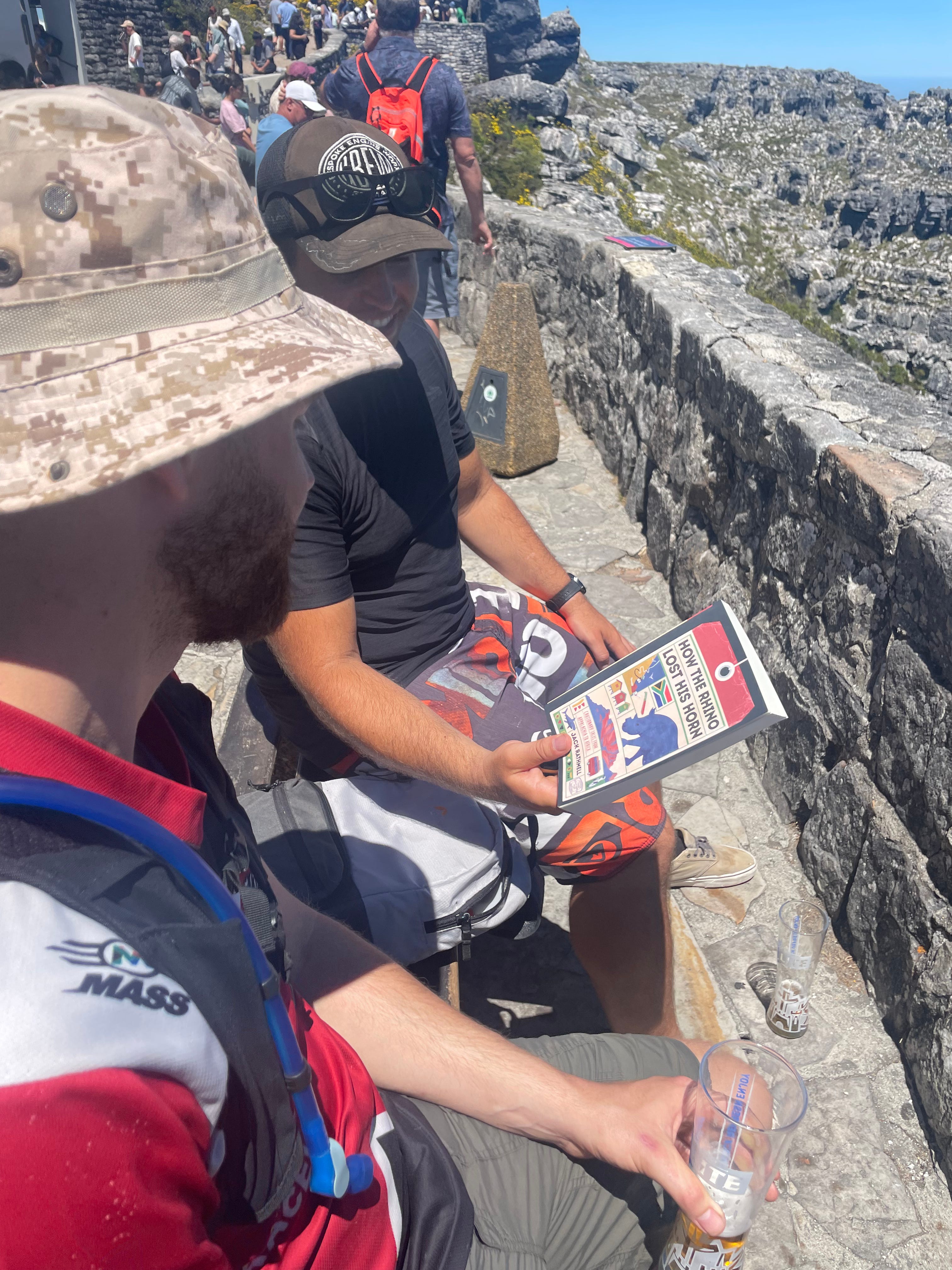 One of the most memorable sights I came across was… my book. My sister and I set out to scale Table Mountain, the plateau of which looms over the city. There’s a cable car that you can take to go up, but that’s cheating (although we still took it down, which in my view, is different since you’ve earned it. If you disagree, let me know in the comments below (👇( ͡° ͜ʖ ͡°) 👇)